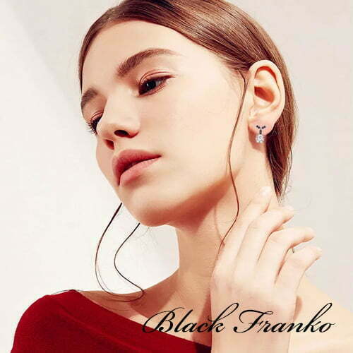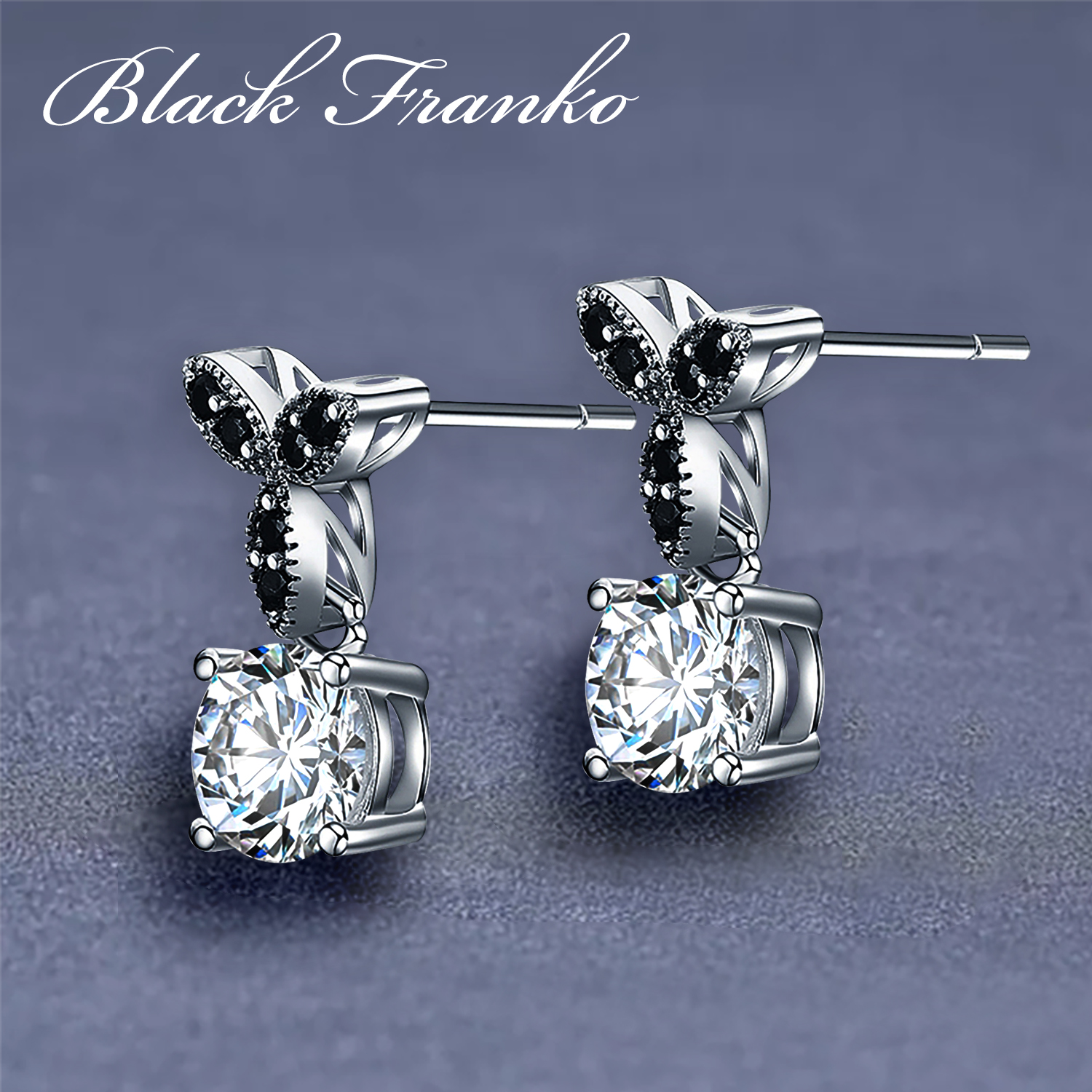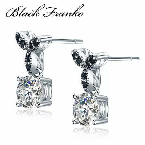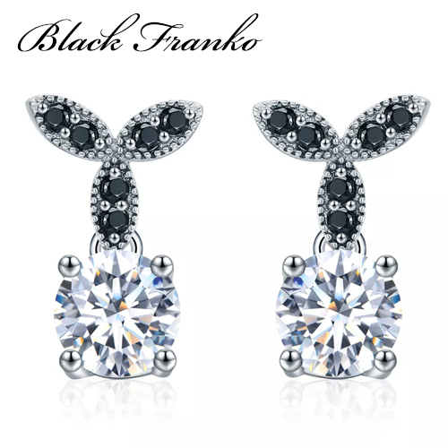 Kolczyki Platerowane Platyną z Czarnym Spinelem i Cyrkoniami | Franko