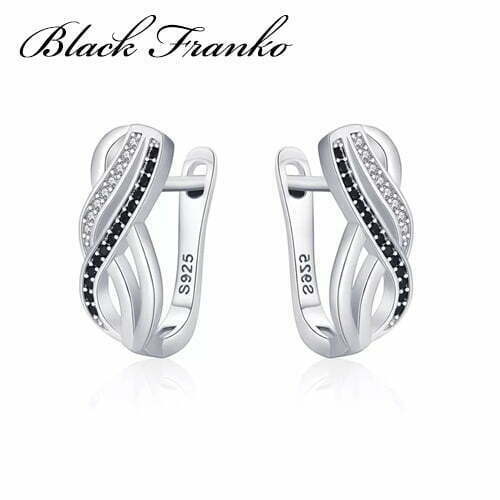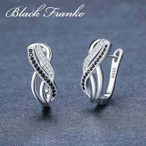 Kolczyki Platerowane Platyną z Czarnym Spinelem i Cyrkoniami | Franko