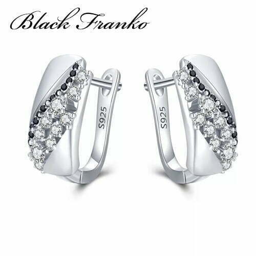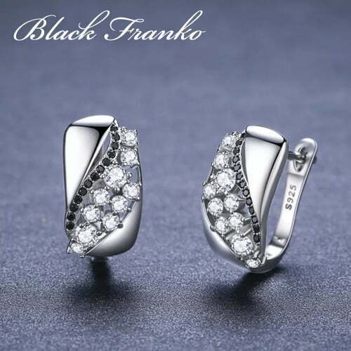 Kolczyki Platerowane Platyną z Czarnym Spinelem i Cyrkoniami | Franko