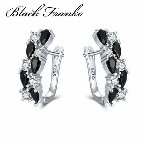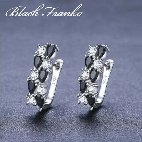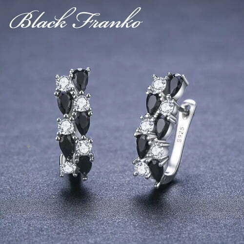 Kolczyki Platerowane Platyną z Czarnym Spinelem i Cyrkoniami | Franko