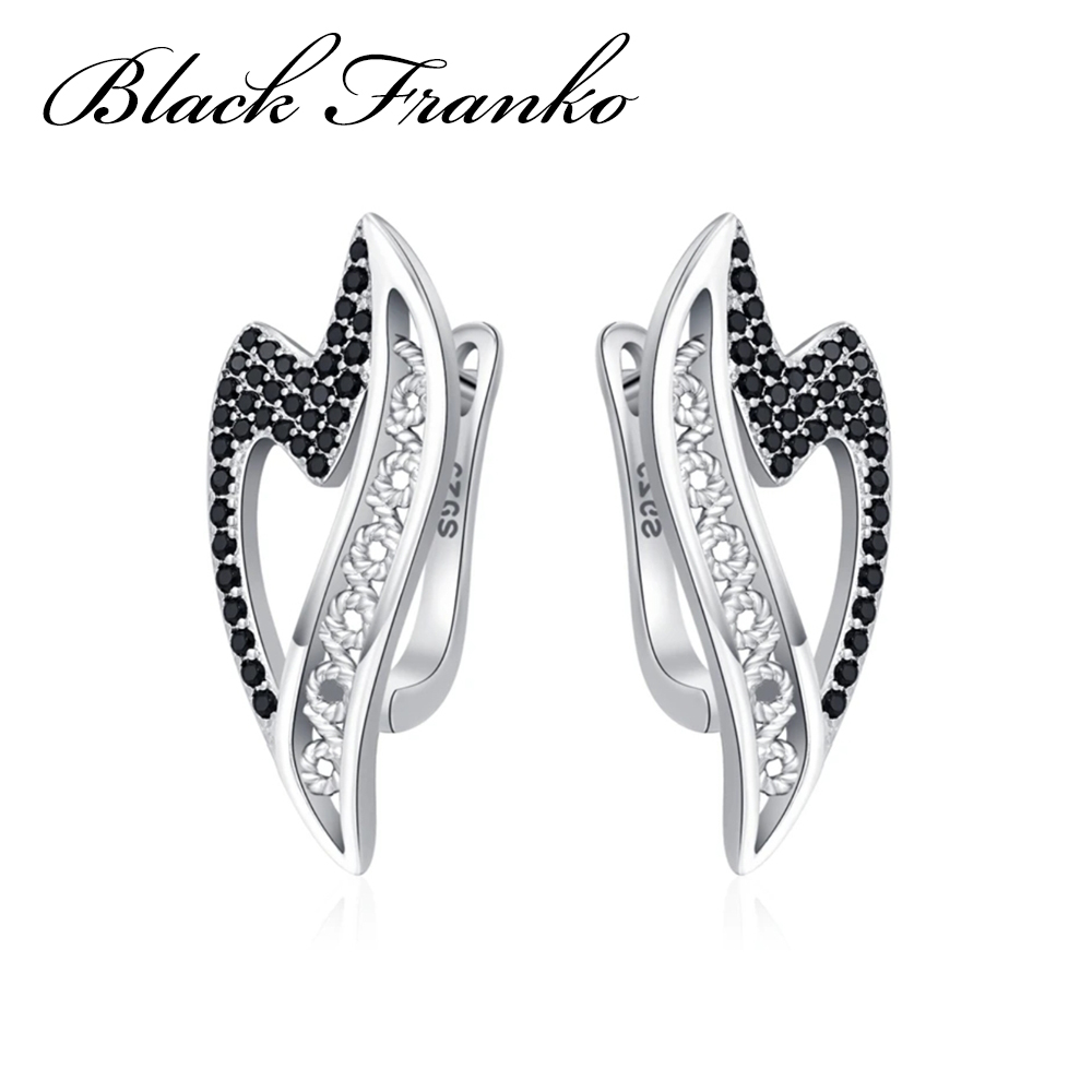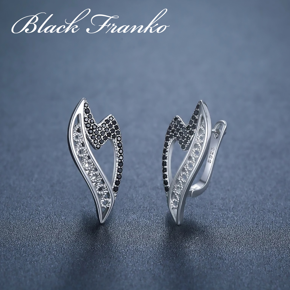 Kolczyki Platerowane Platyną z Czarnym Spinelem i Cyrkoniami | Franko
