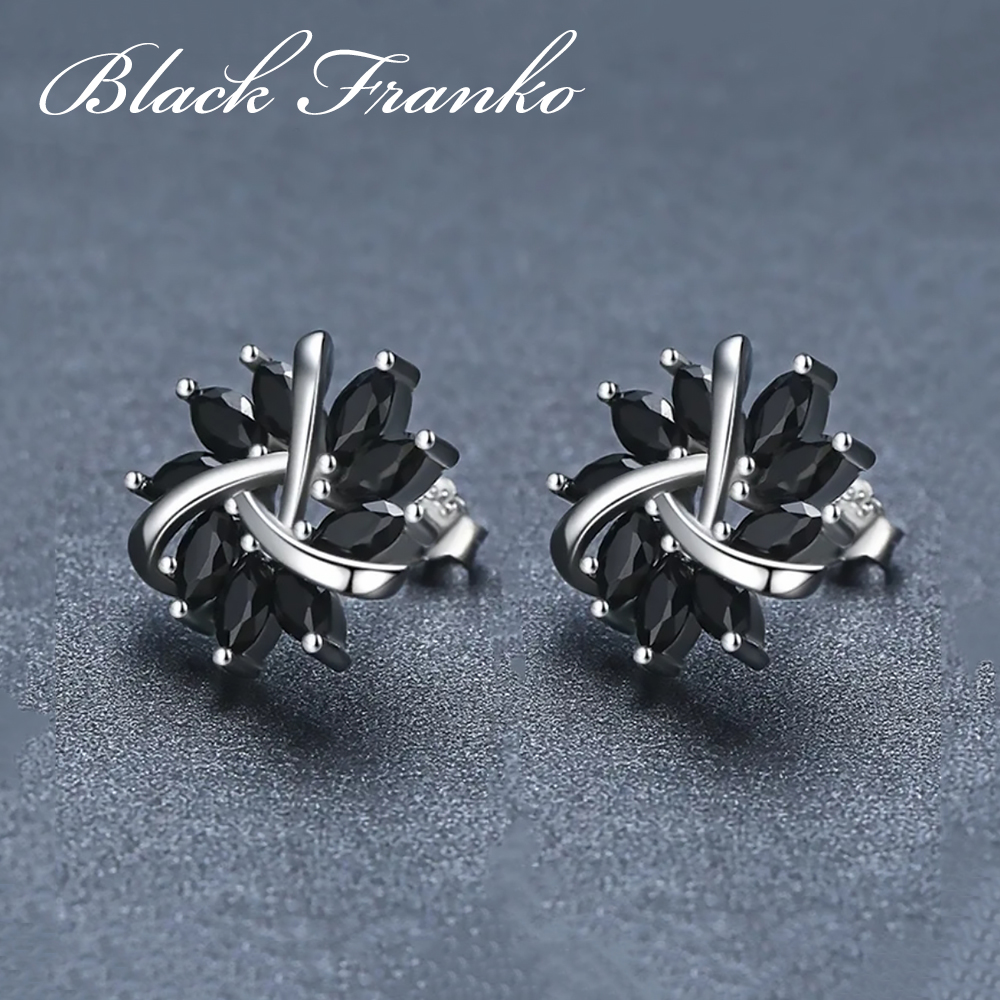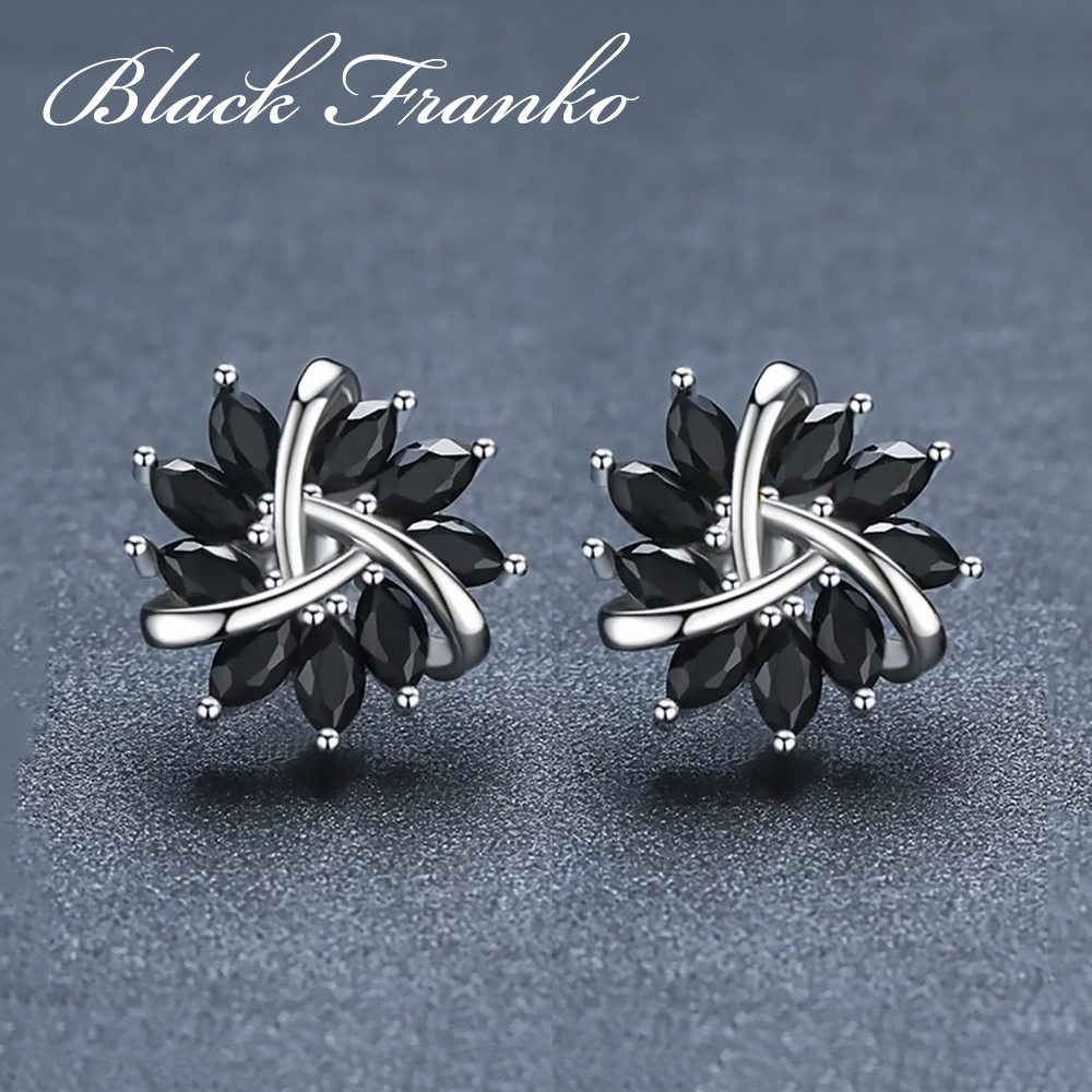 Kolczyki Platerowane Platyną z Czarnym Spinelem i Cyrkoniami | Franko