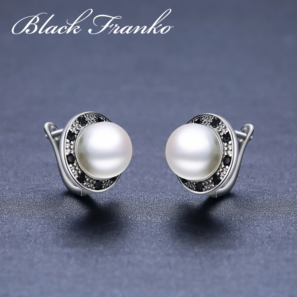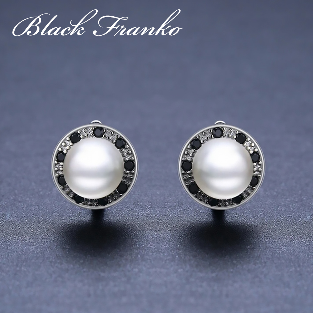 Kolczyki Platerowane Platyną z Czarnym Spinelem i Cyrkoniami | Franko