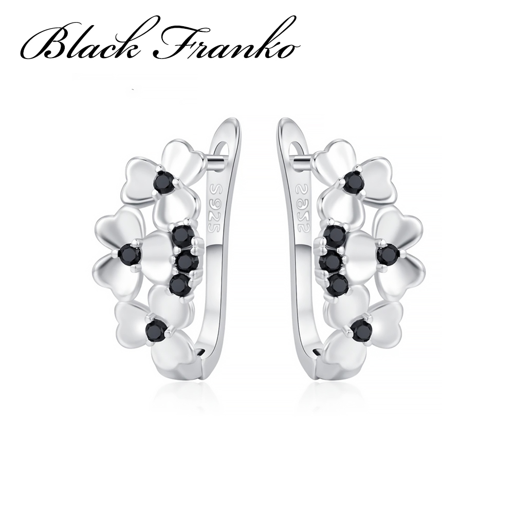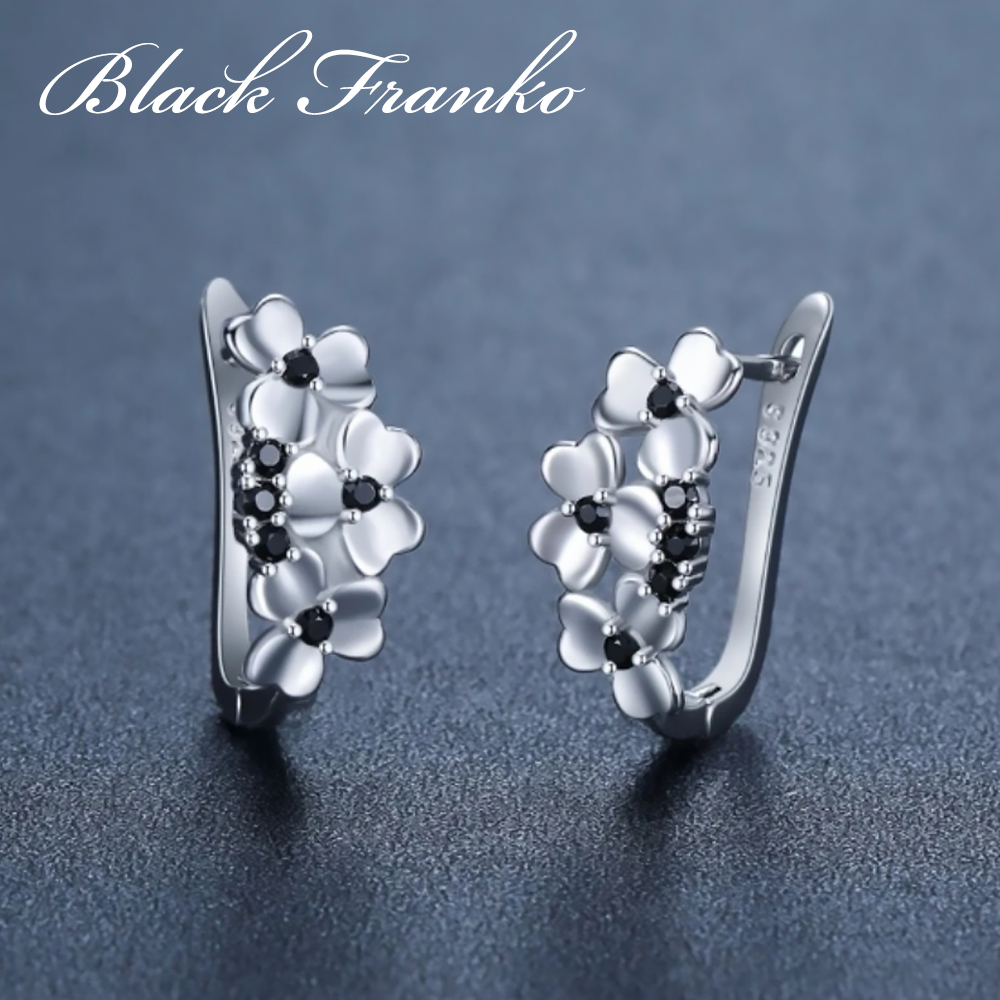 Kolczyki Platerowane Platyną z Czarnym Spinelem i Cyrkoniami | Franko