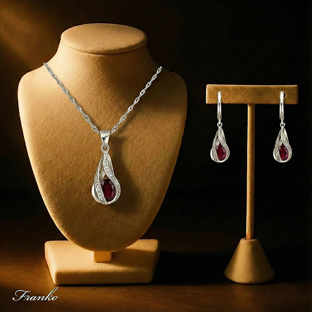 Dodaj blasku swojej stylizacji dzięki naszemu wyjątkowemu kompletowi biżuterii o ponadczasowym motywie „łezki”. Ten zestaw to połączenie klasycznej elegancji z nowoczesnym wzornictwem, idealny zarówno do wieczorowych kreacji, jak i jako wyrafinowany dodatek na co dzień.