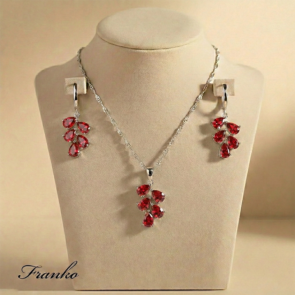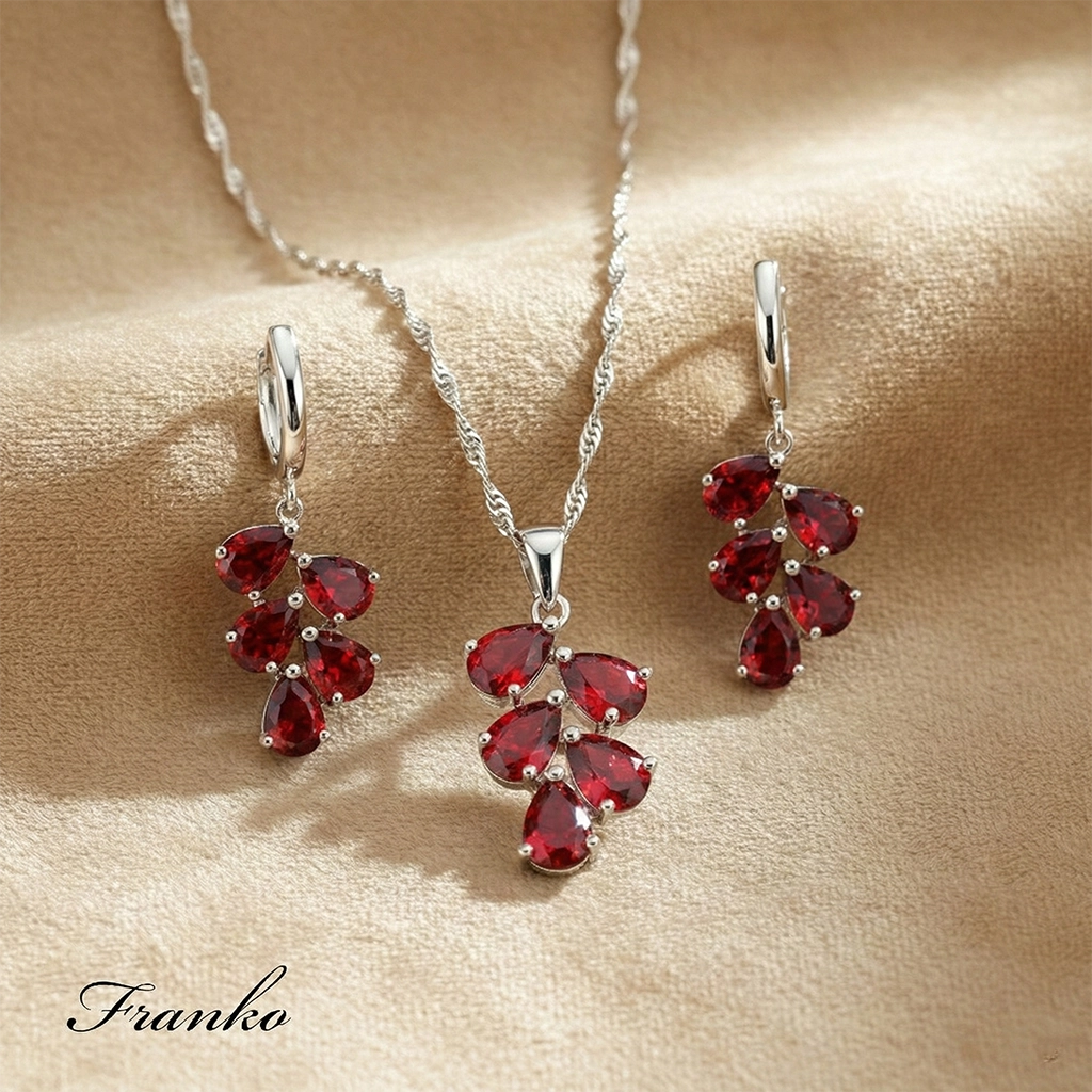 Design, który zachwyca Głównym elementem zestawu są precyzyjnie szlifowane kamienie w kształcie subtelnych łezek (gruszek). Ułożone w kunsztowną, kaskadową kompozycję, pięknie odbijają światło przy każdym ruchu, tworząc efektowną grę barw. Całość zawieszona jest na delikatnym, skręcanym łańcuszku, który idealnie dopełnia ten wyrafinowany projekt.