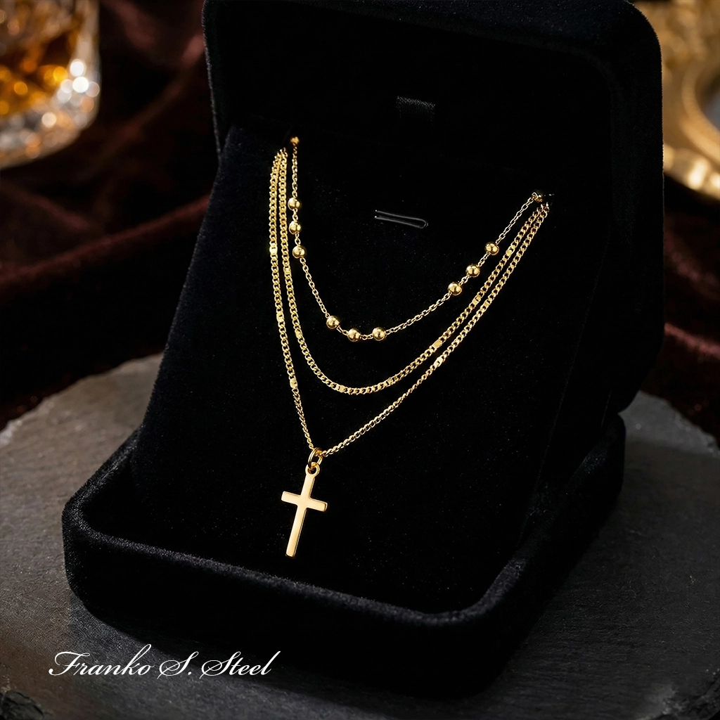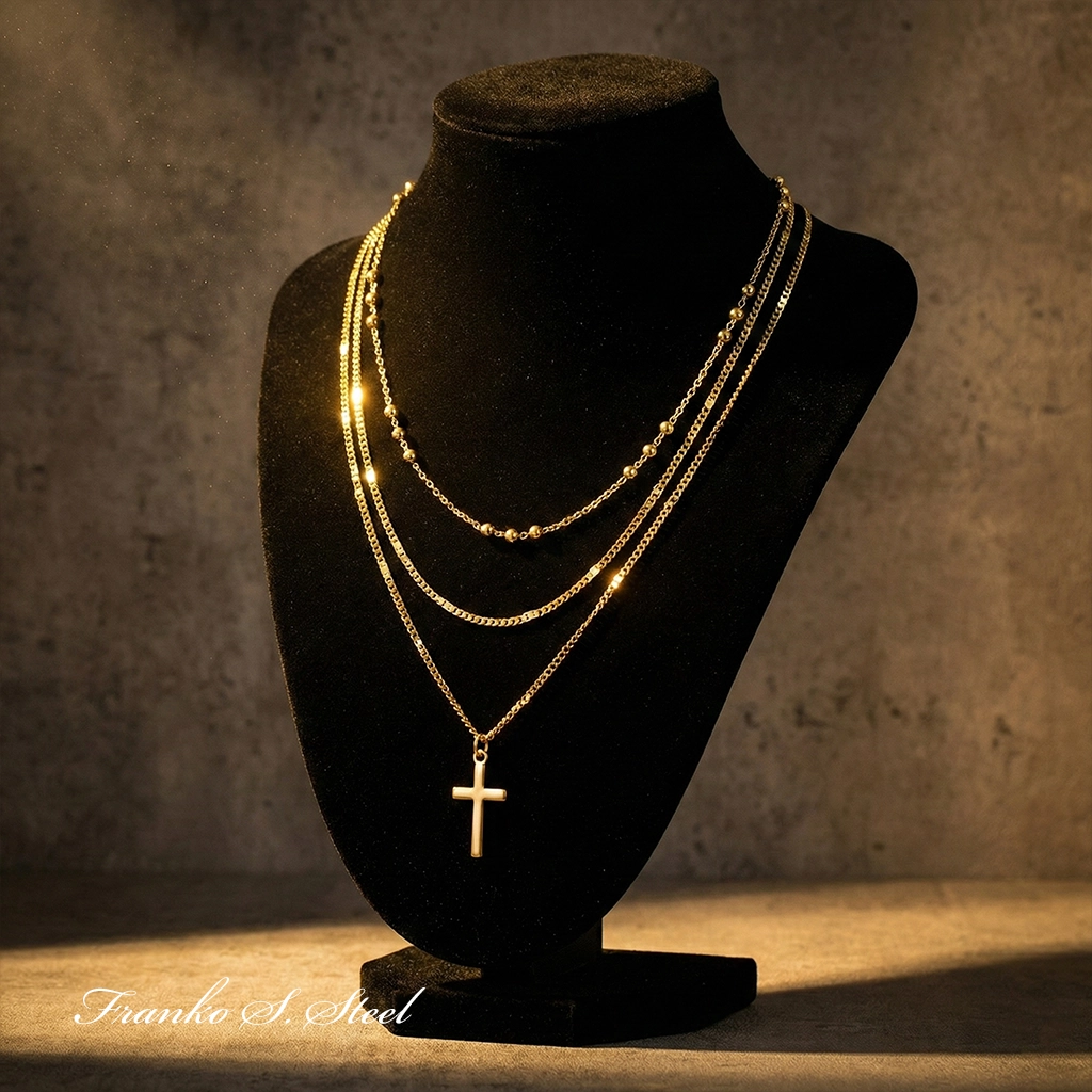 Elegancki Potrójny Naszyjnik ze Stali Szlachetnej – Motyw Krzyża