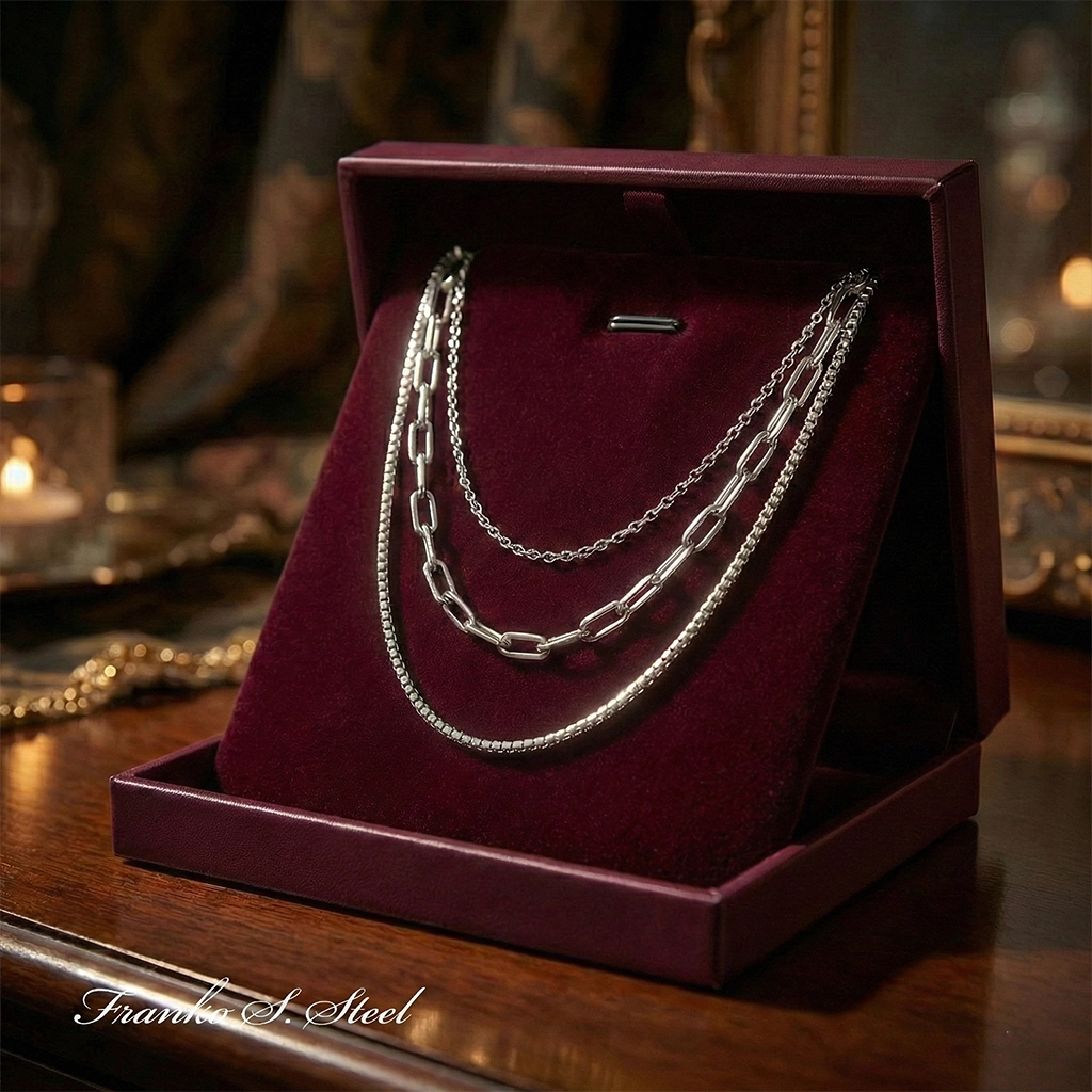 Biżuteria typu „multi-layer” (wielowarstwowa) to absolutny must-have – w tym modelu otrzymujesz efekt perfekcyjnie dobranego, kaskadowego kompletu w jednym gotowym produkcie. Naszyjnik wykonany jest z wysokiej jakości stali chirurgicznej, co gwarantuje trwałość, lustrzany połysk i doskonały wygląd przez długi czas.