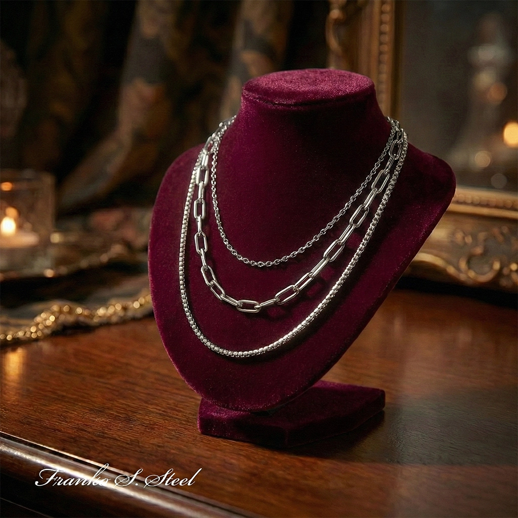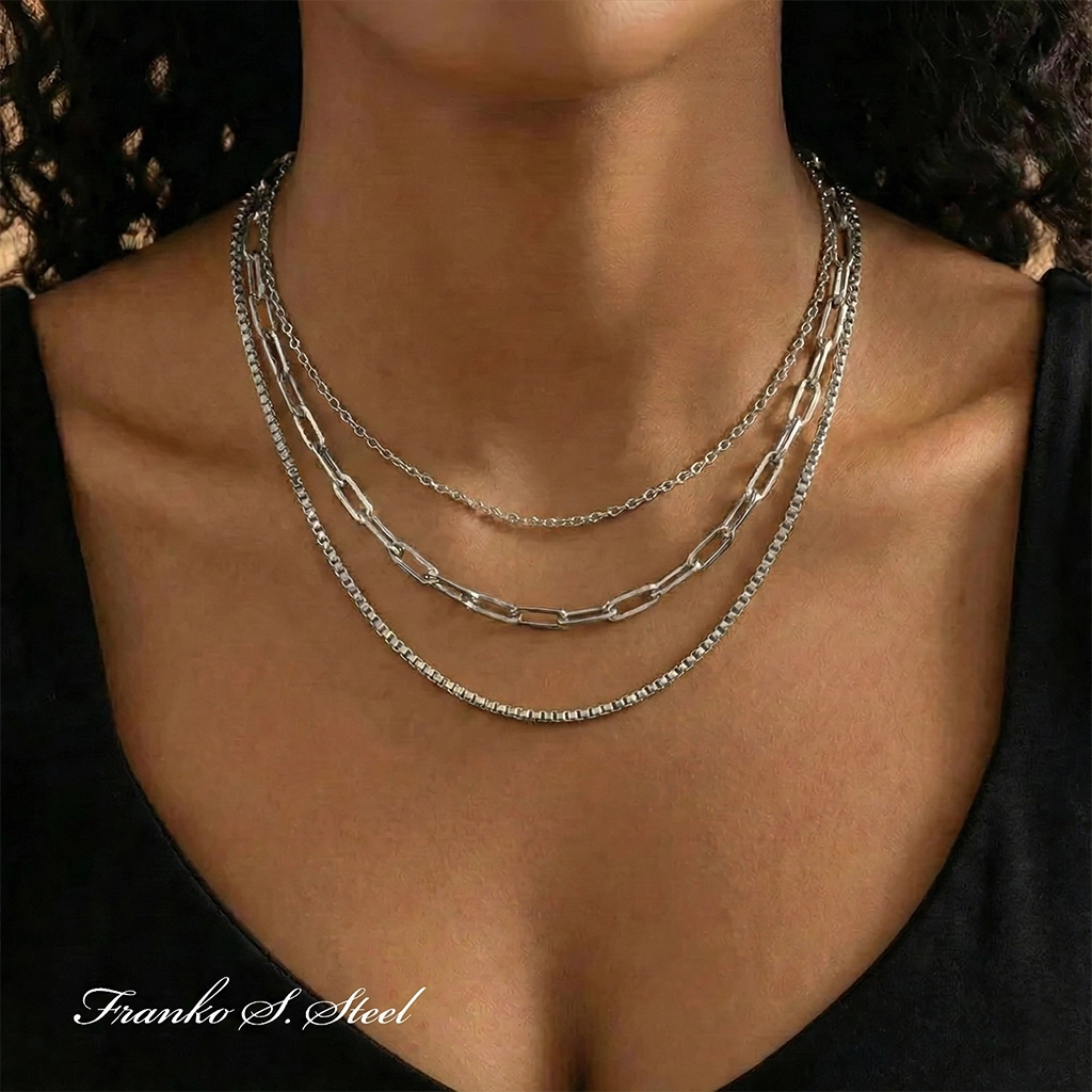 Elegancki Potrójny Naszyjnik ze Stali Szlachetnej – Srebrna Geometria