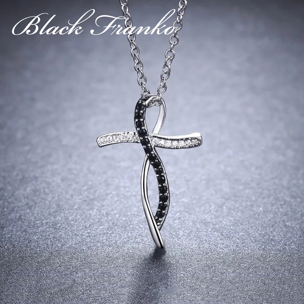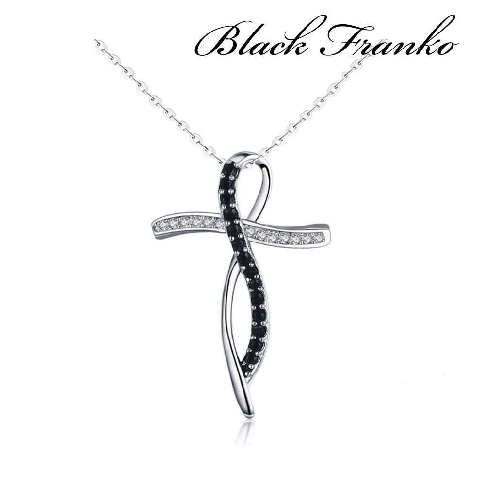 Naszyjnik Platerowany Platyną z Czarnym Spinelem i Cyrkoniami | Black Franko