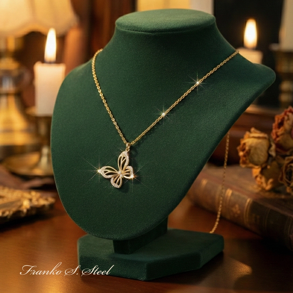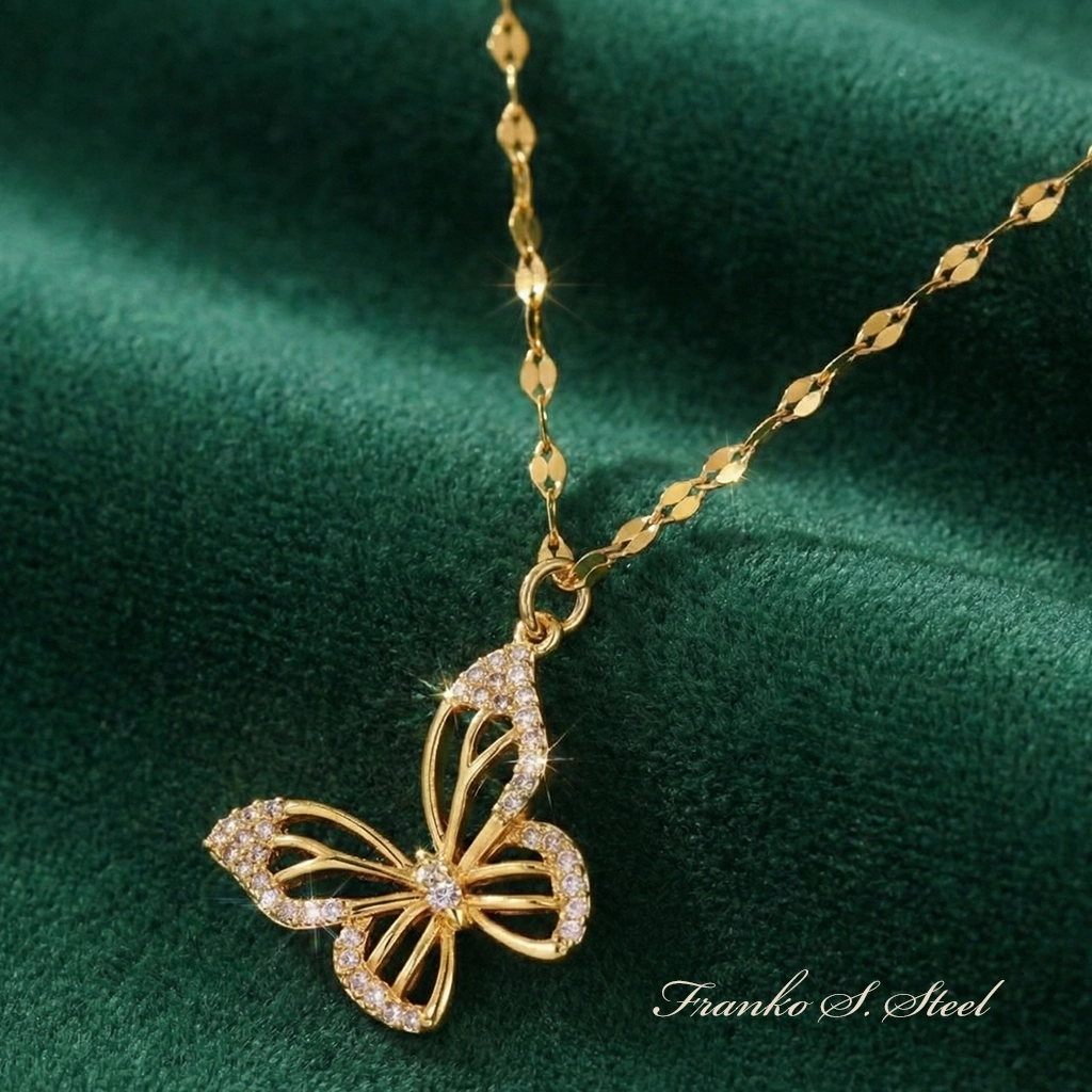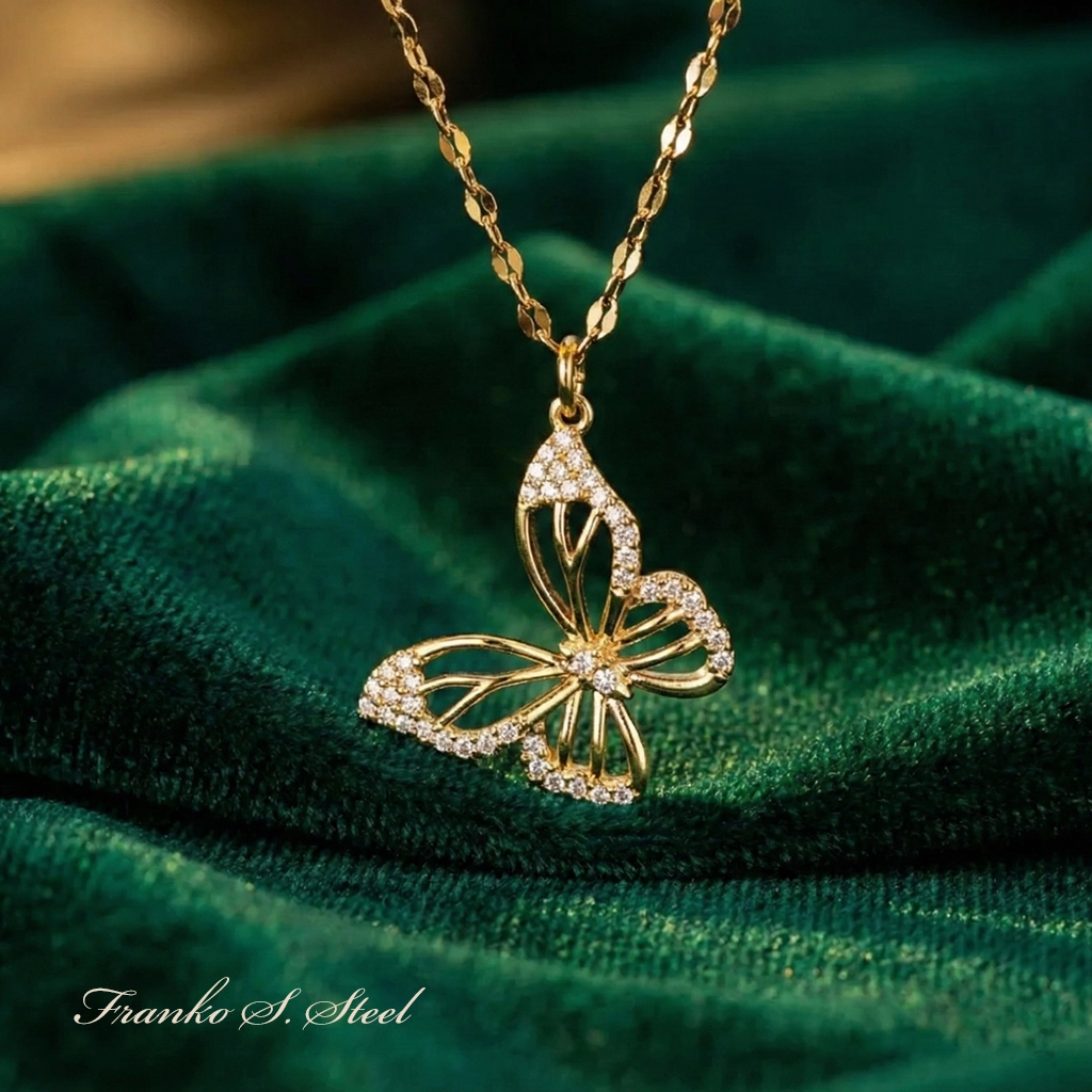 NASZYJNIK ZŁOTY NSN07 STAL CHIRURGICZNA MOTYL AŻUROWY CYRKONIE PREZENT 316L