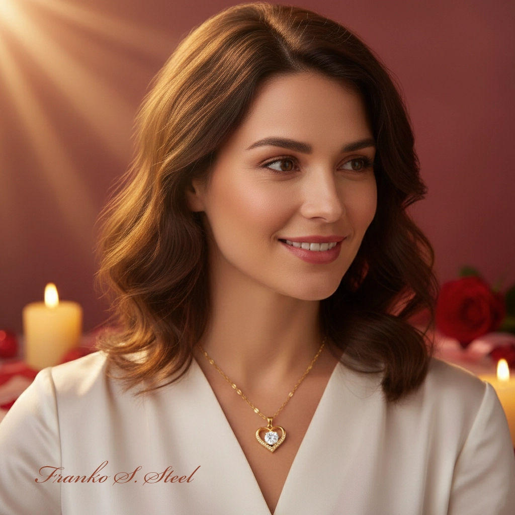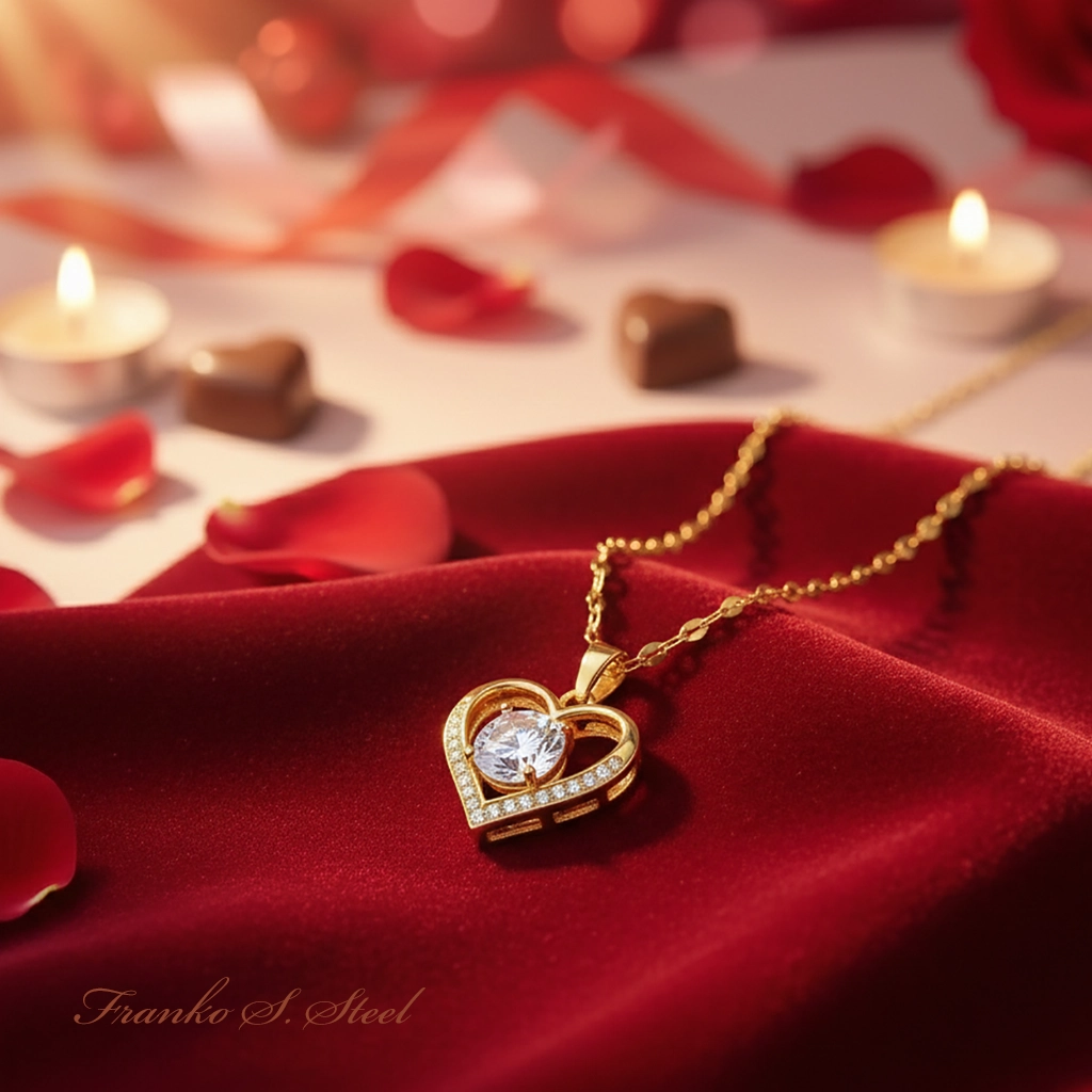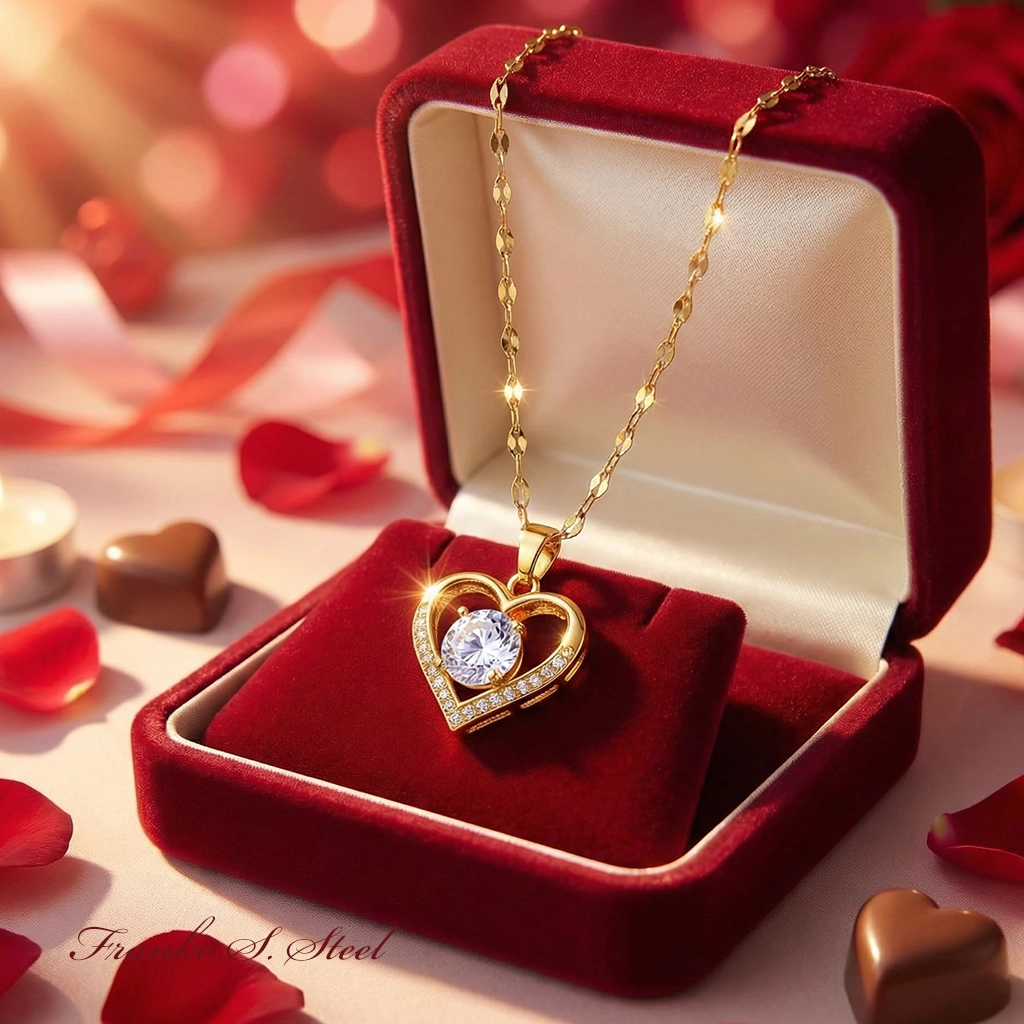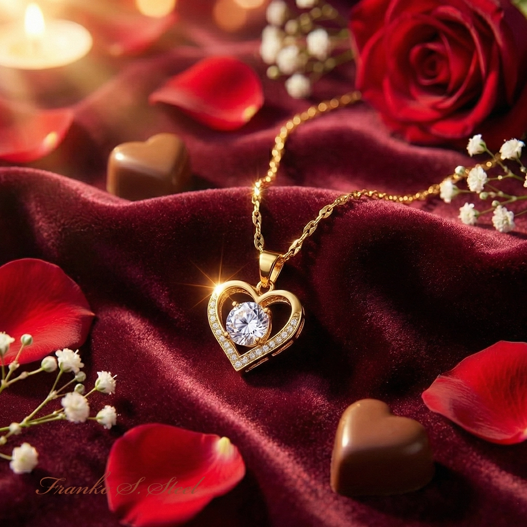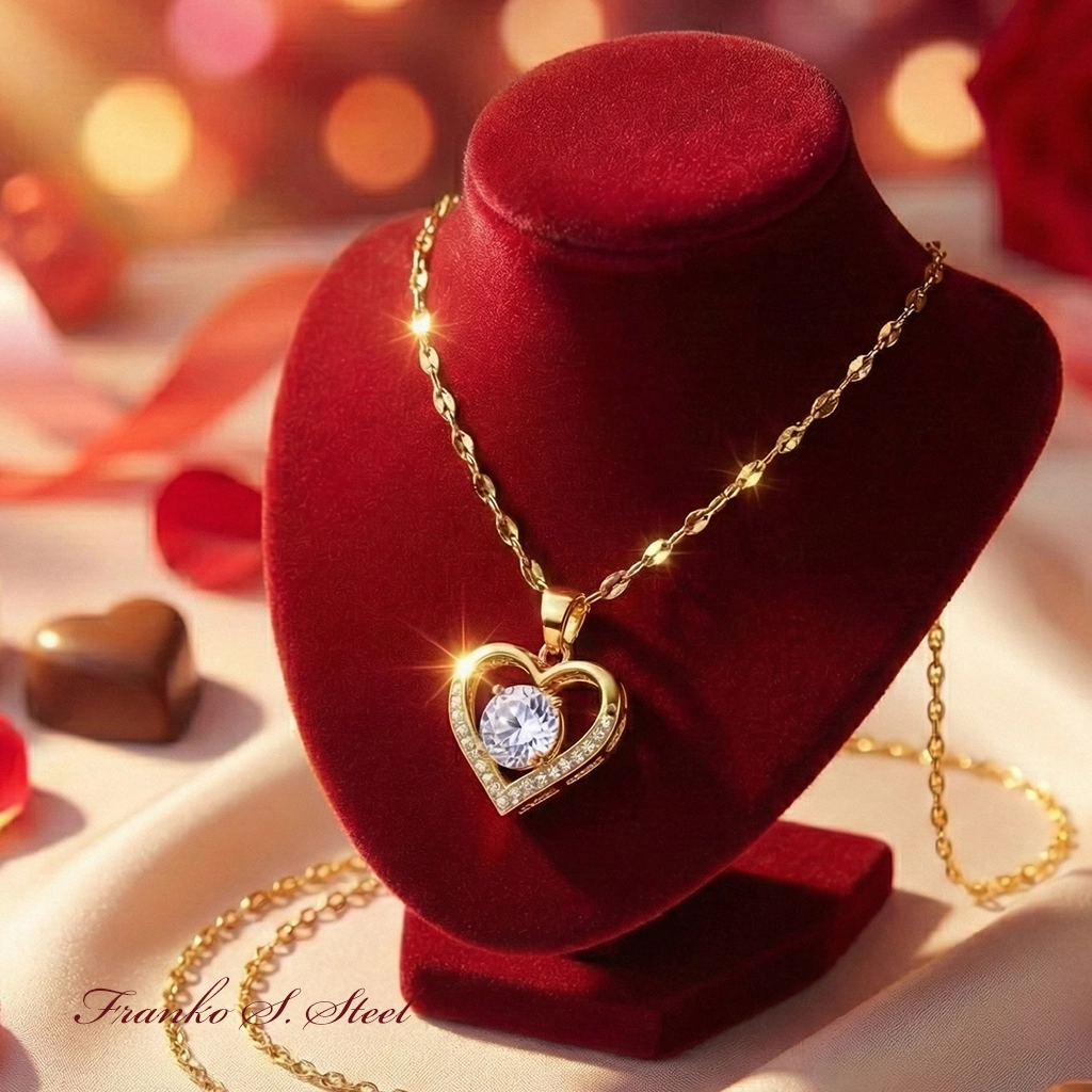 • Romantyczny design: Klasyczny motyw serca z dużym, centralnym kryształem, który „lewituje” w środku.