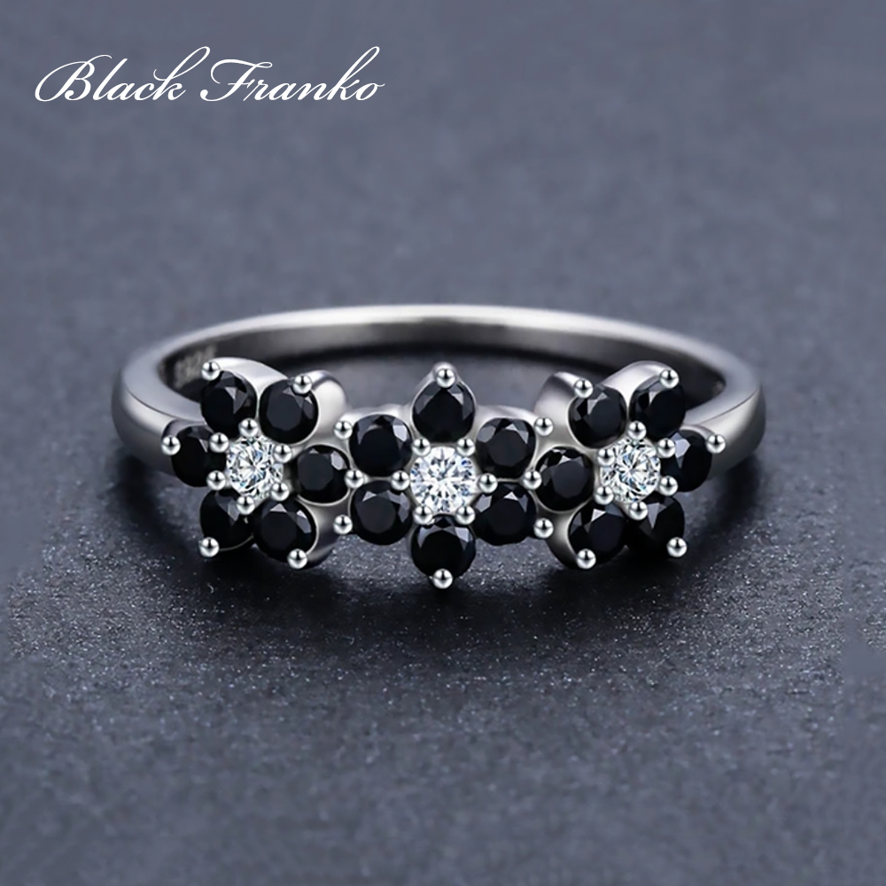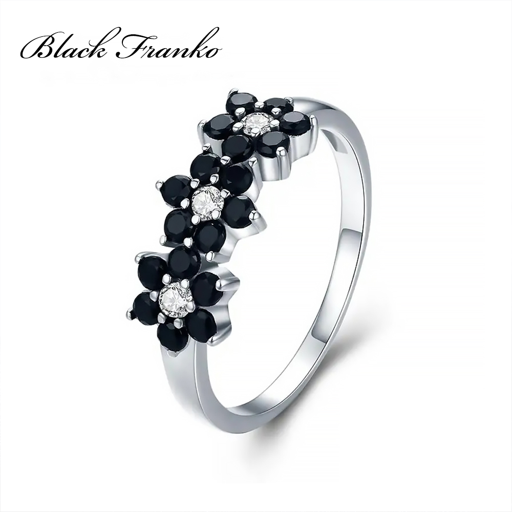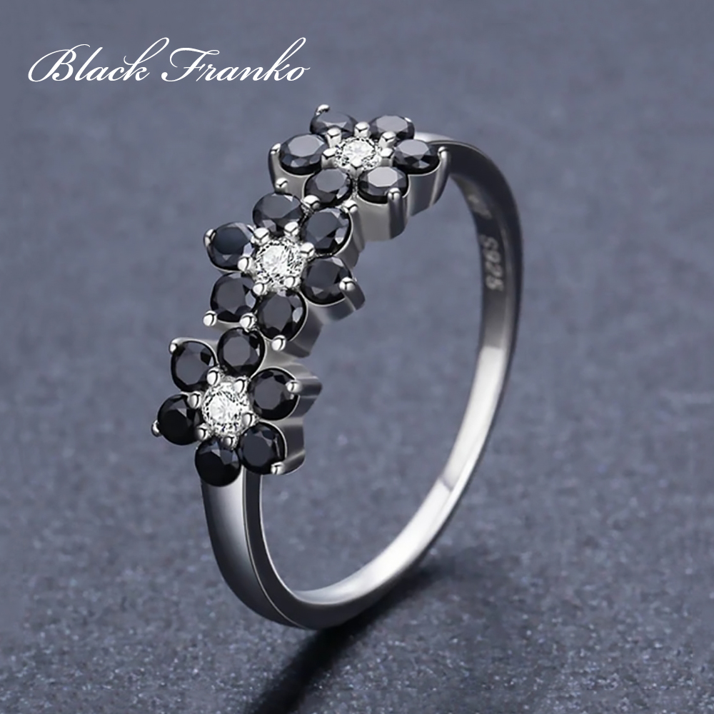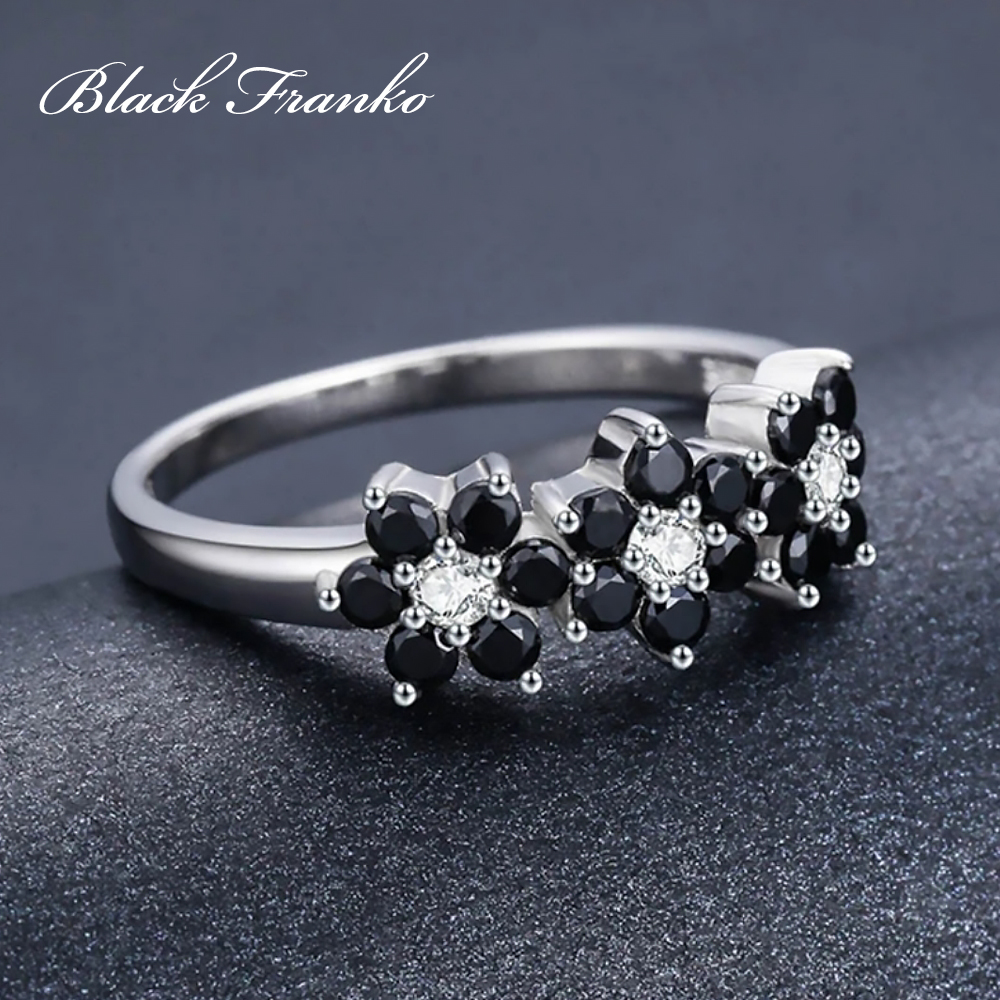 Pierścionek Platerowany Platyną z Czarnym Spinelem i Cyrkoniami | Franko