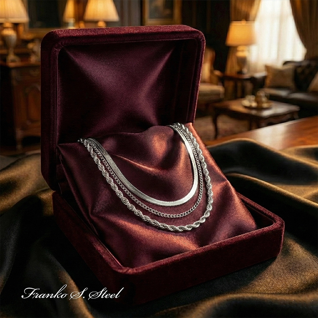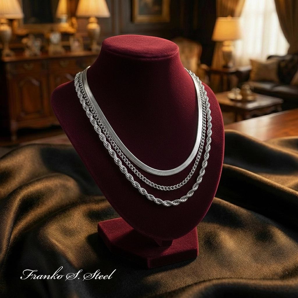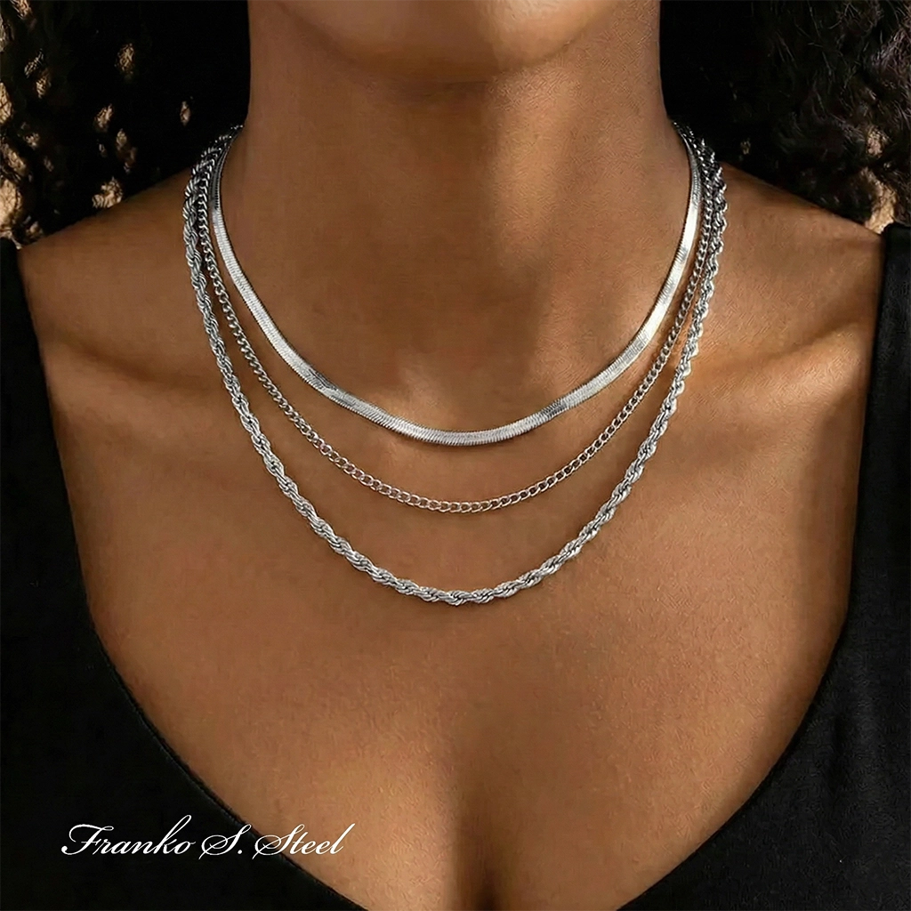 Kupując jeden produkt, zyskujesz kompletną bazę do budowania modnych stylizacji – od codziennego „office looku” po wieczorowe wyjścia. Całość wykonana z wysokiej jakości stali chirurgicznej 316L, co gwarantuje lustrzany połysk i trwałość na lata.